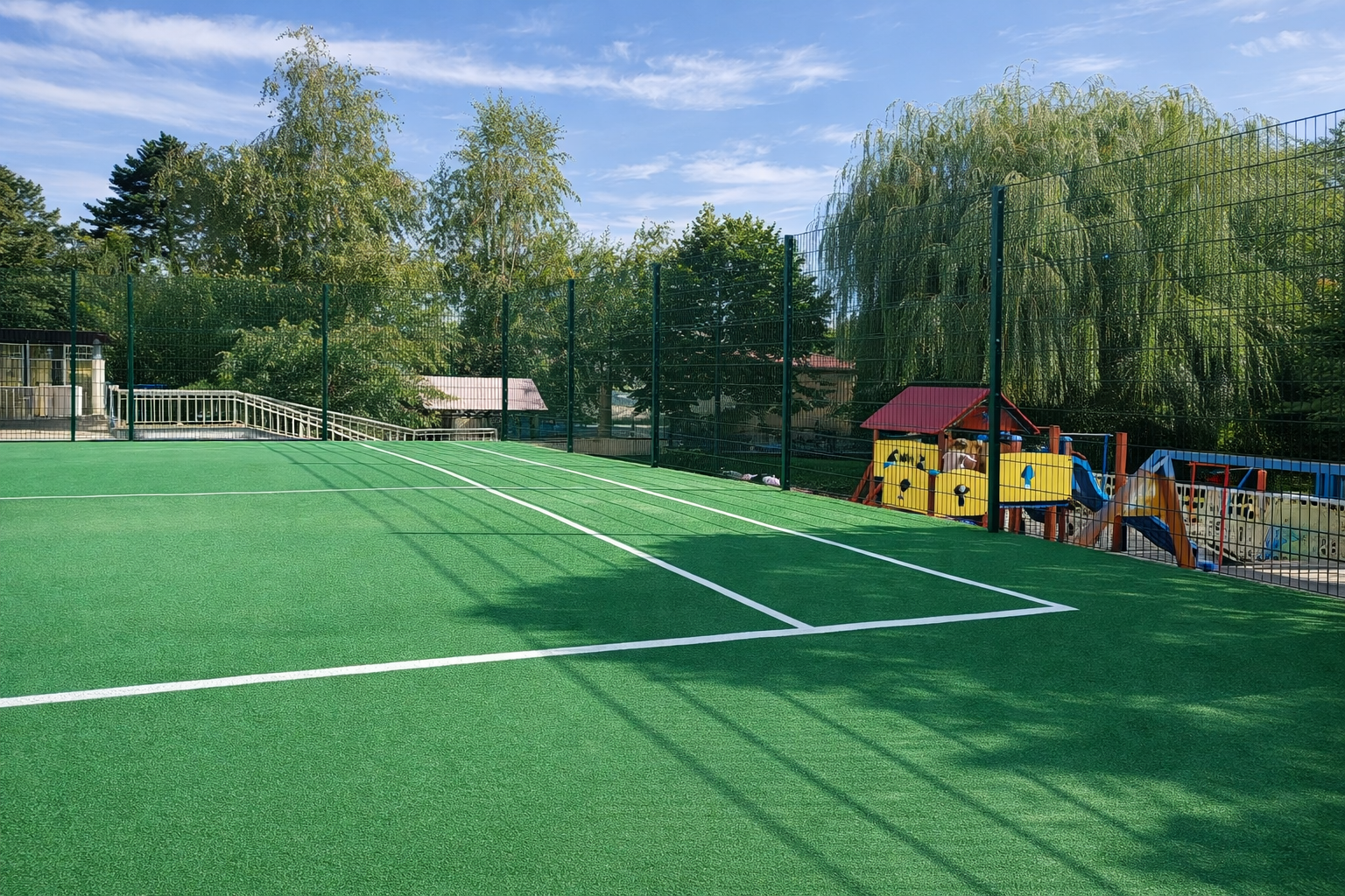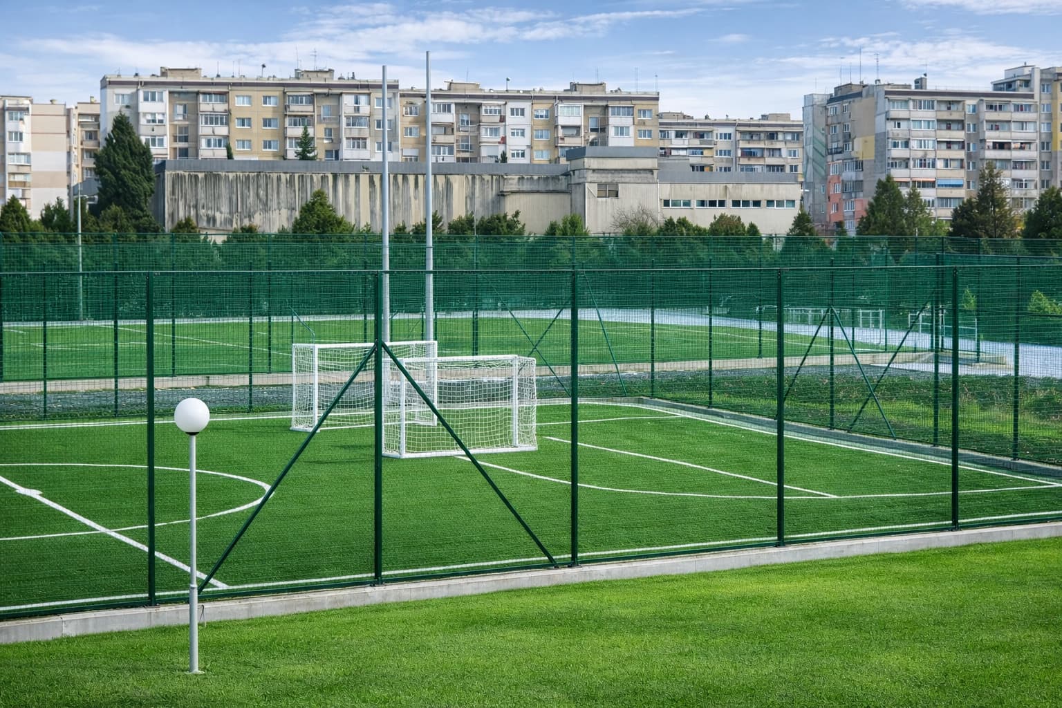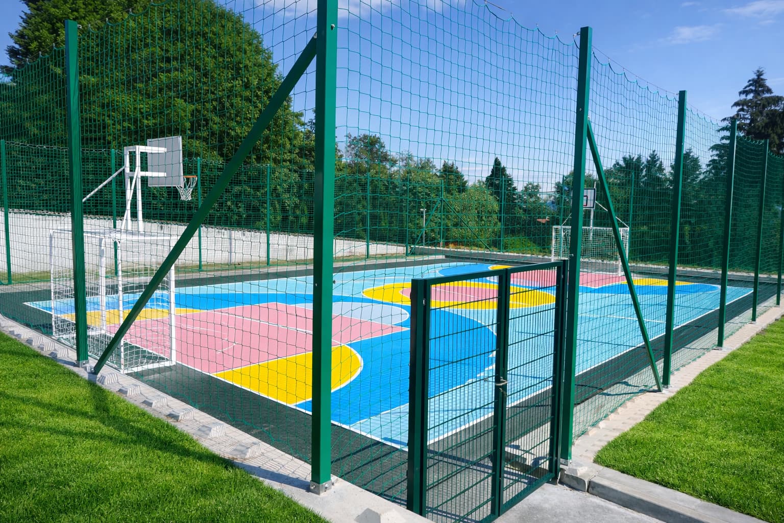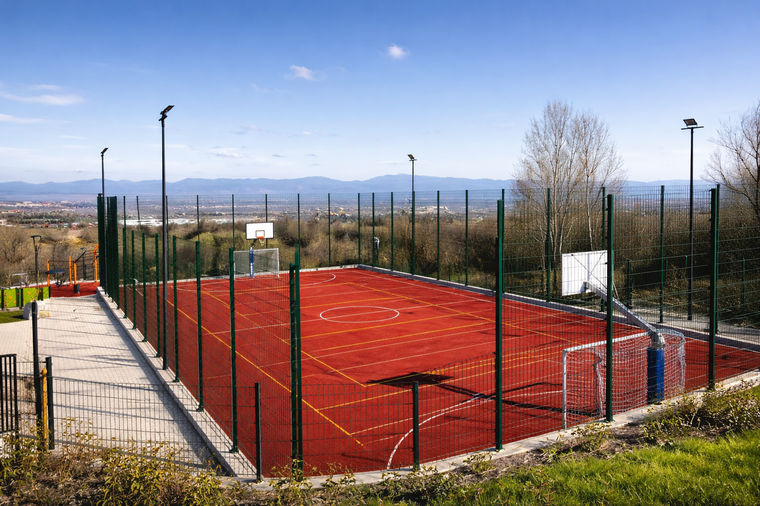 Оградите за спортни площадки са важен елемент за безопасността на играчите и за ограничаване на пространството за игра. Те предотвратяват излизането на топките извън терена, осигуряват контрол на достъпа и създават ясно обособена спортна зона. Най-често се използват метални панелни огради или огради от мрежа, които са устойчиви на натоварване, атмосферни условия и интензивна употреба.