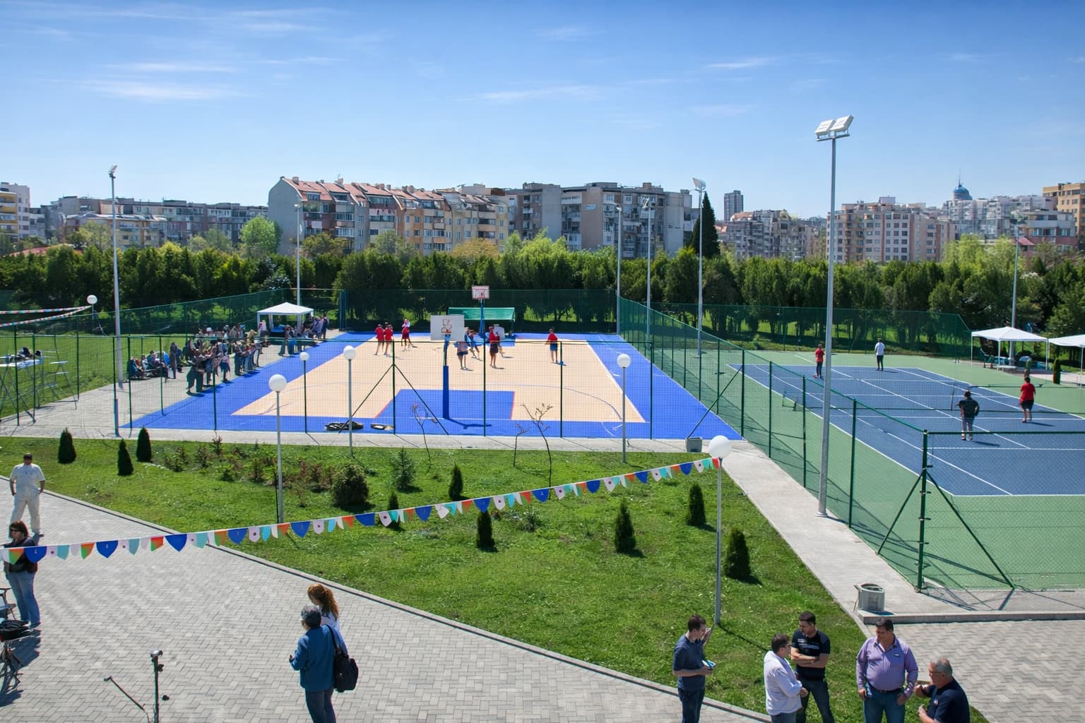Оградните системи за спортни терени се проектират така, че да бъдат здрави, дълготрайни и естетически издържани. Те могат да включват специализирани врати за достъп, усилени стълбове и удароустойчиви панели, които гарантират надеждна експлоатация дори при интензивно използване на съоръжението.