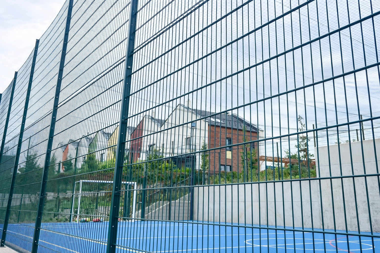 Височината на оградата обикновено е между 4 и 6 метра, в зависимост от вида на спорта – футбол, тенис, баскетбол или мултифункционални игрища. При някои съоръжения, особено при комбинирани площадки или училищни пространства, се монтират и допълнителни предпазни мрежи над терена, които предотвратяват излитането на топките извън игралната зона и повишават безопасността.