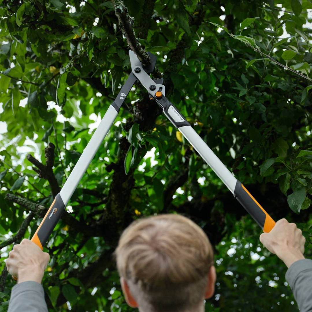 - Телескопична резачка за високи клони Fiskars DualAction UPX96 - за високи дървета и труднодостъпни клони.