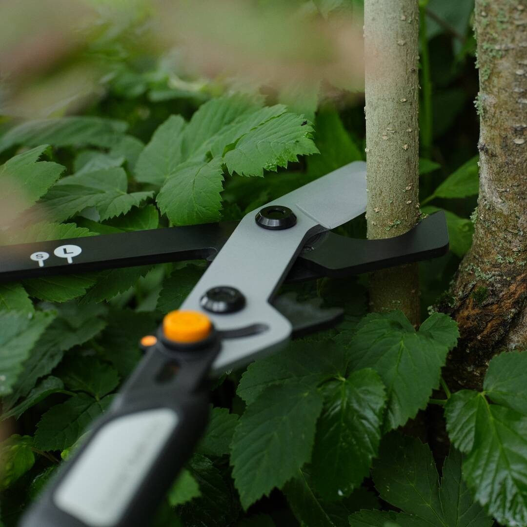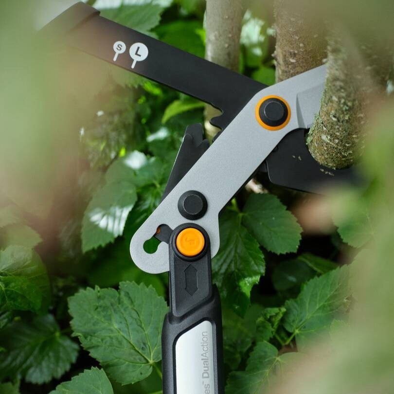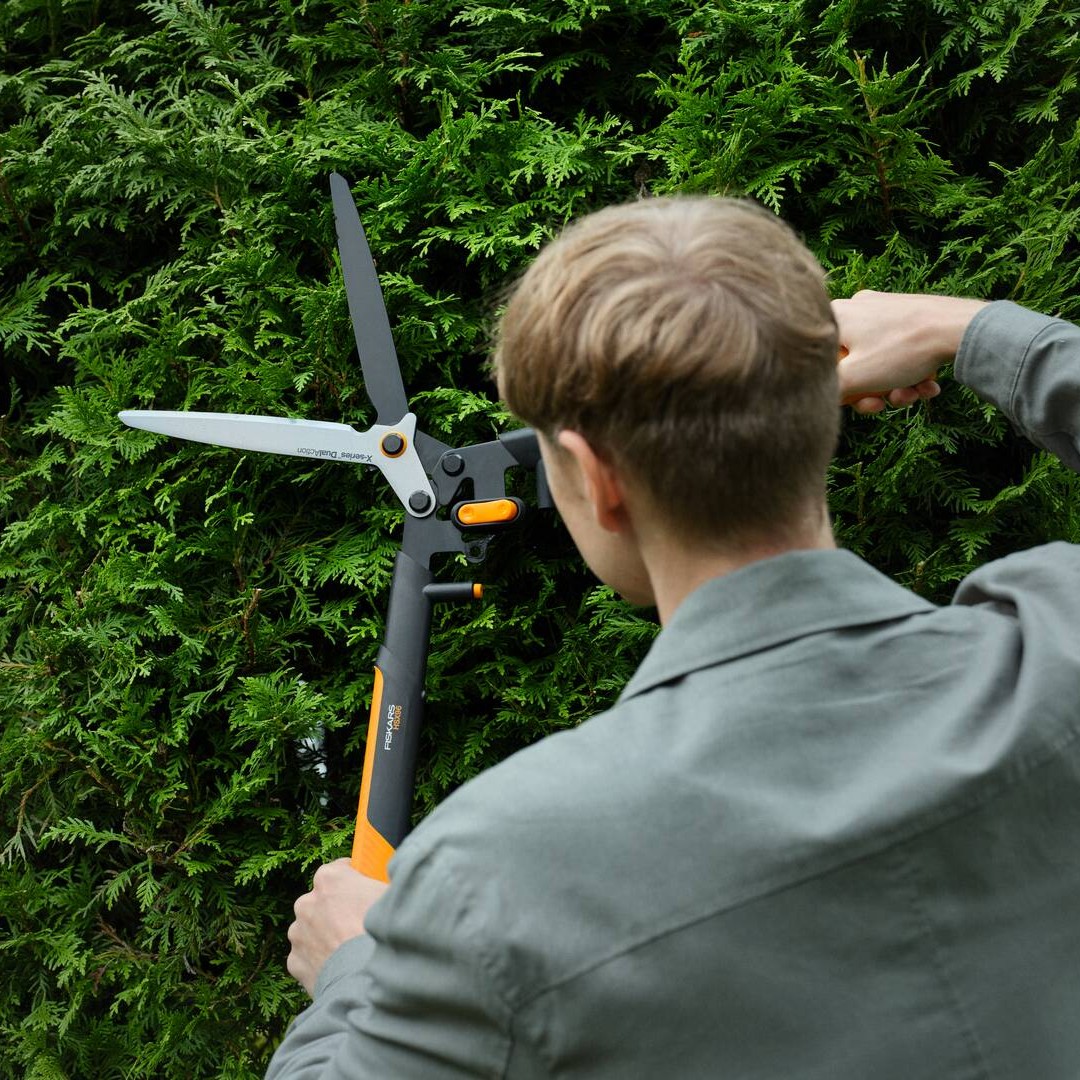 - Ножица за храсти Fiskars DualAction HSX96 - за оформяне на жив плет и храсти.